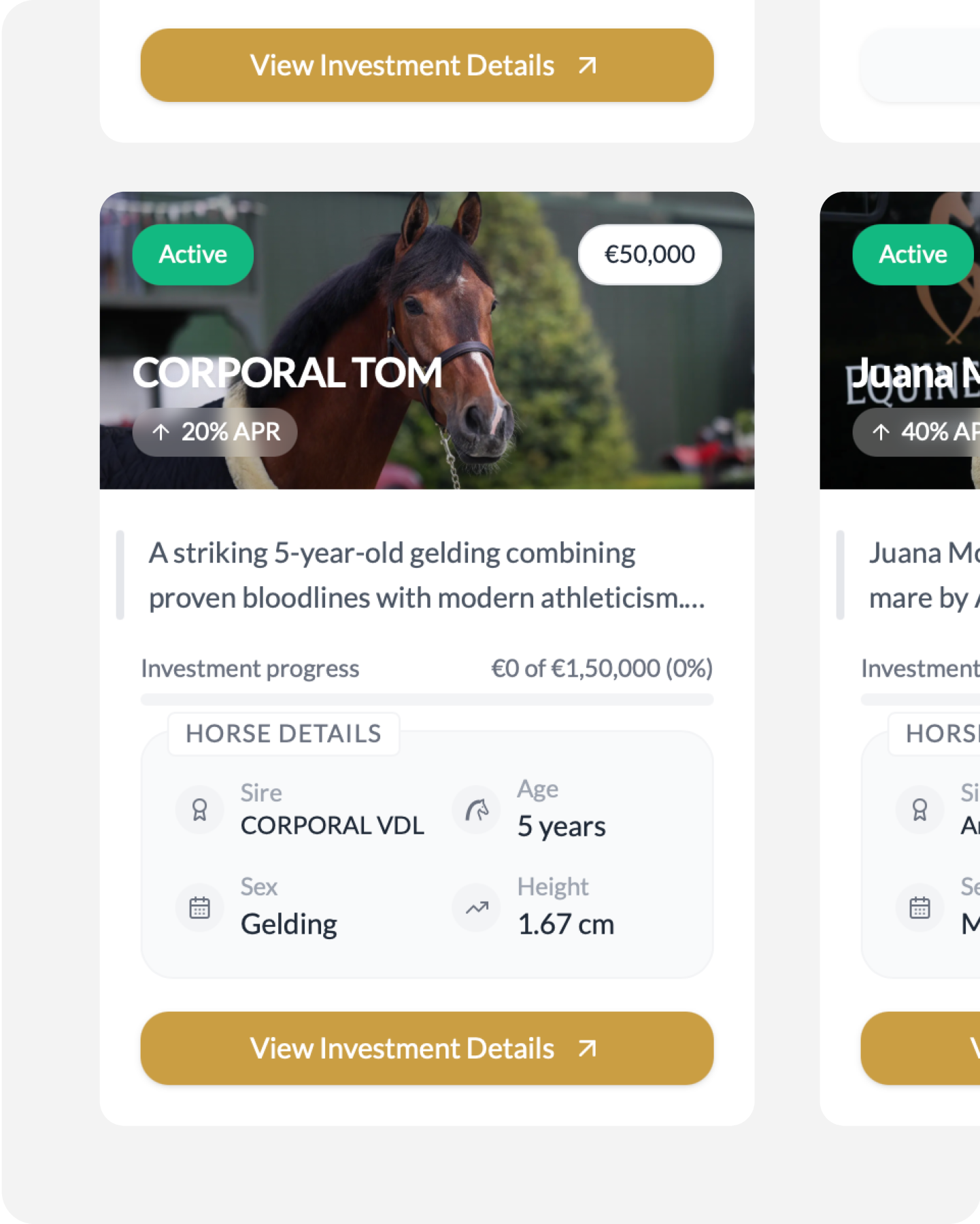 Discover the elite horses that have recently excelled in competitions and are now available for investment on our platform. This month, we’re thrilled to feature three outstanding sport horses that have shown remarkable skill and potential in recent competitions: “Thunderbolt” – A stunning Hanoverian gelding with an impressive track record in show jumping,...