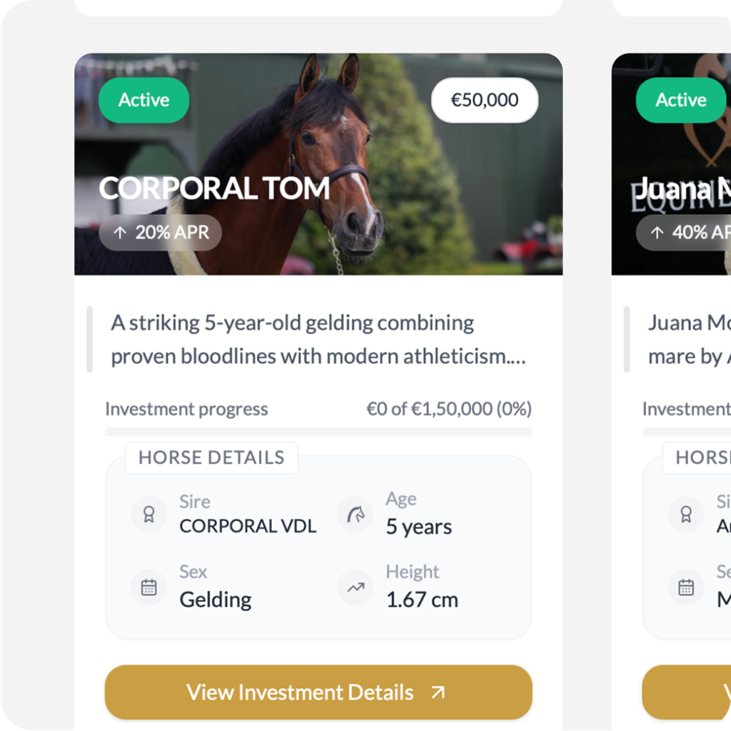 Explore high-return opportunities by investing in premium horses.